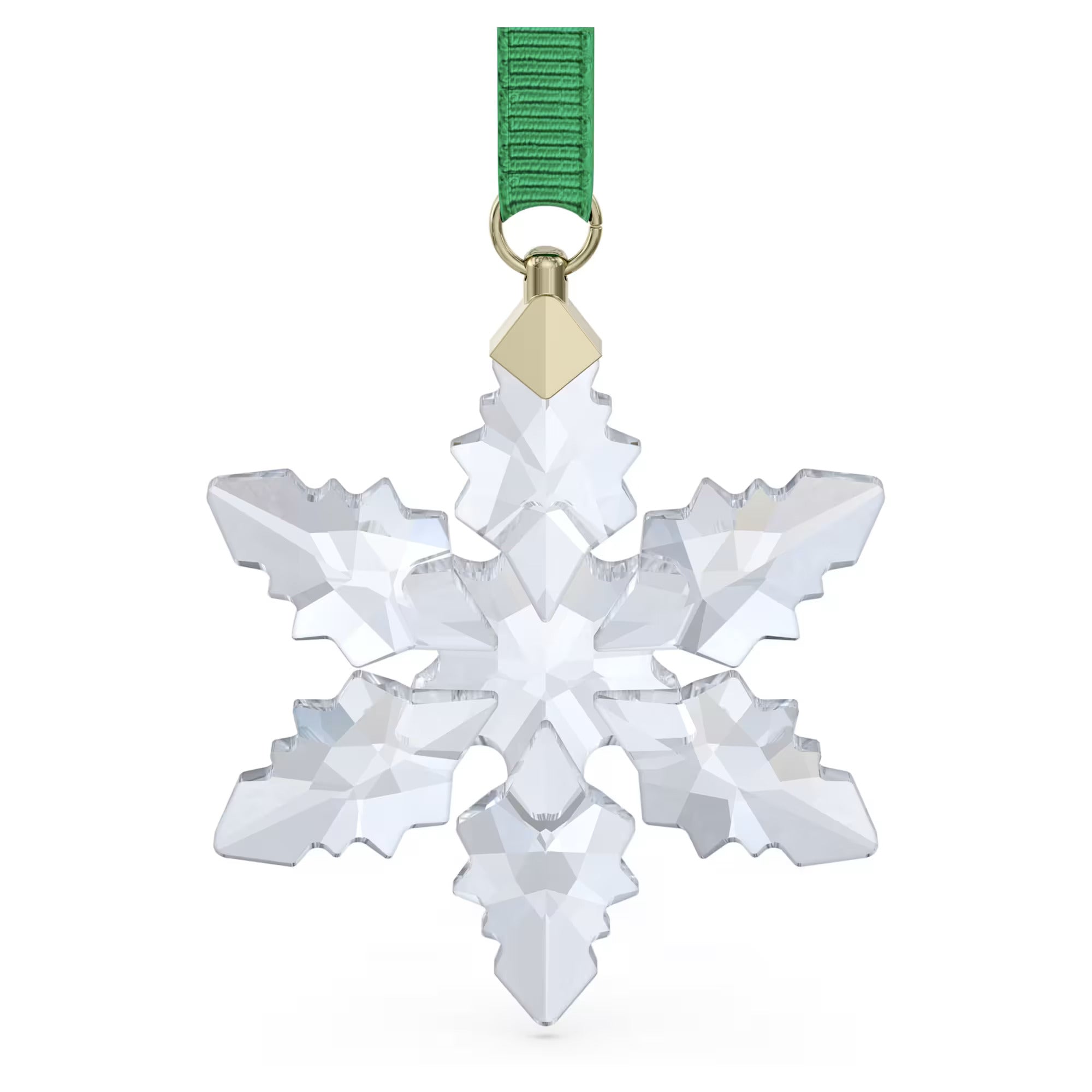 Our beloved tradition of Annual Edition Ornaments continues in 2024 with this glistening snowflake. Shining brightly throughout the festive season, the clear design is finely crafted with 133 facets and hangs from a green grosgrain ribbon. Perfect for displaying on your tree, in a window, or alongside our elegant Christmas Ornament Home Displays or Bell Jars. Decoration object. Not a toy. Not suitable for children under 15.