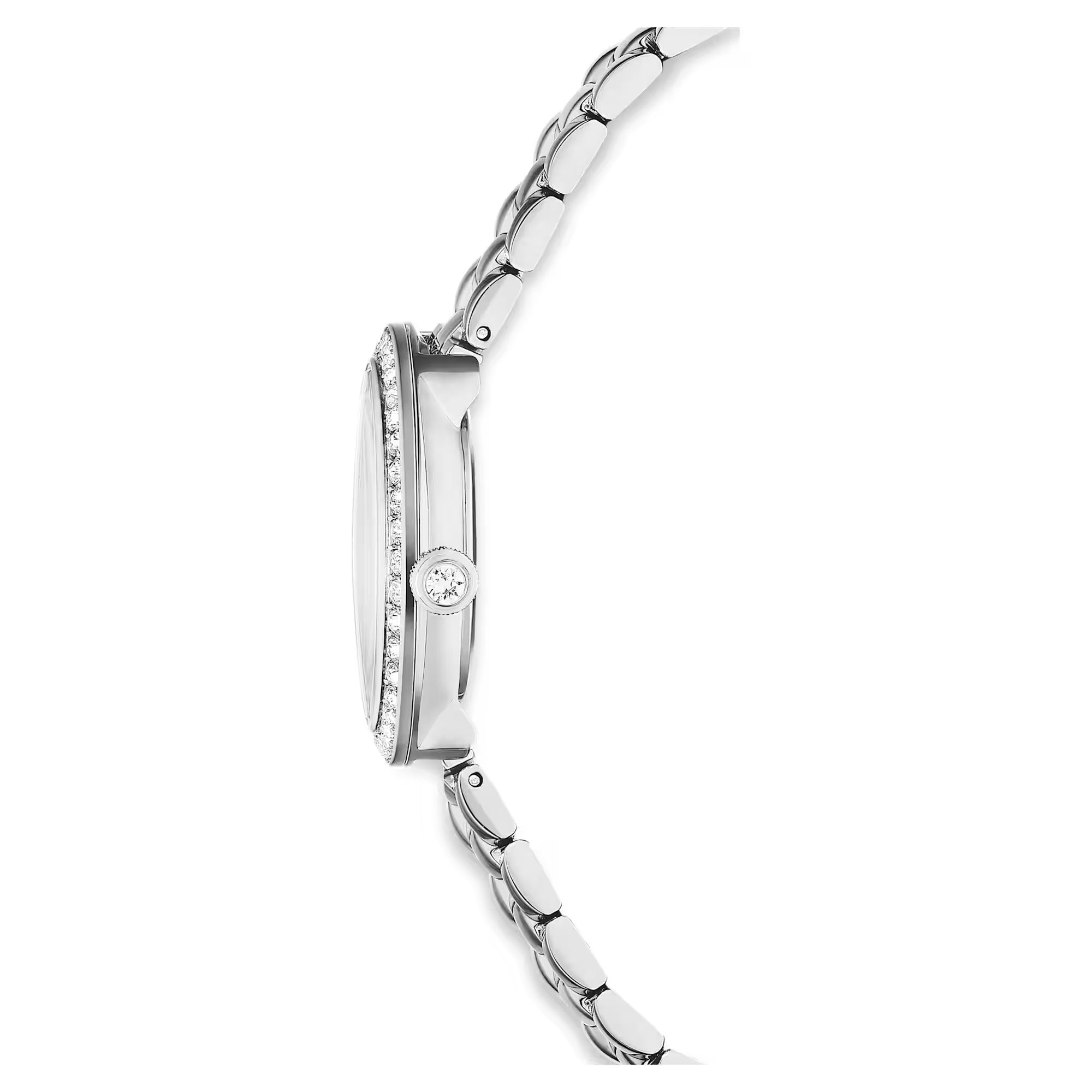 Blending Swarovski radiance with contemporary design, this Certa watch is the perfect fusion of artistry and functionality. The 30mm stainless steel case features a bezel set with a shimmering pavé of 42 crystals, while on the radiant sunray dial, there is an elegant swan logo at 12 o’clock and three index markers crafted from individual baguette-cut crystals. A single crystal is set within the crown, and the three-link metal bracelet provides a comfortable fit around the wrist. This Swiss made watch is water resistant to 50 meters and is a timeless choice to complement your everyday style.