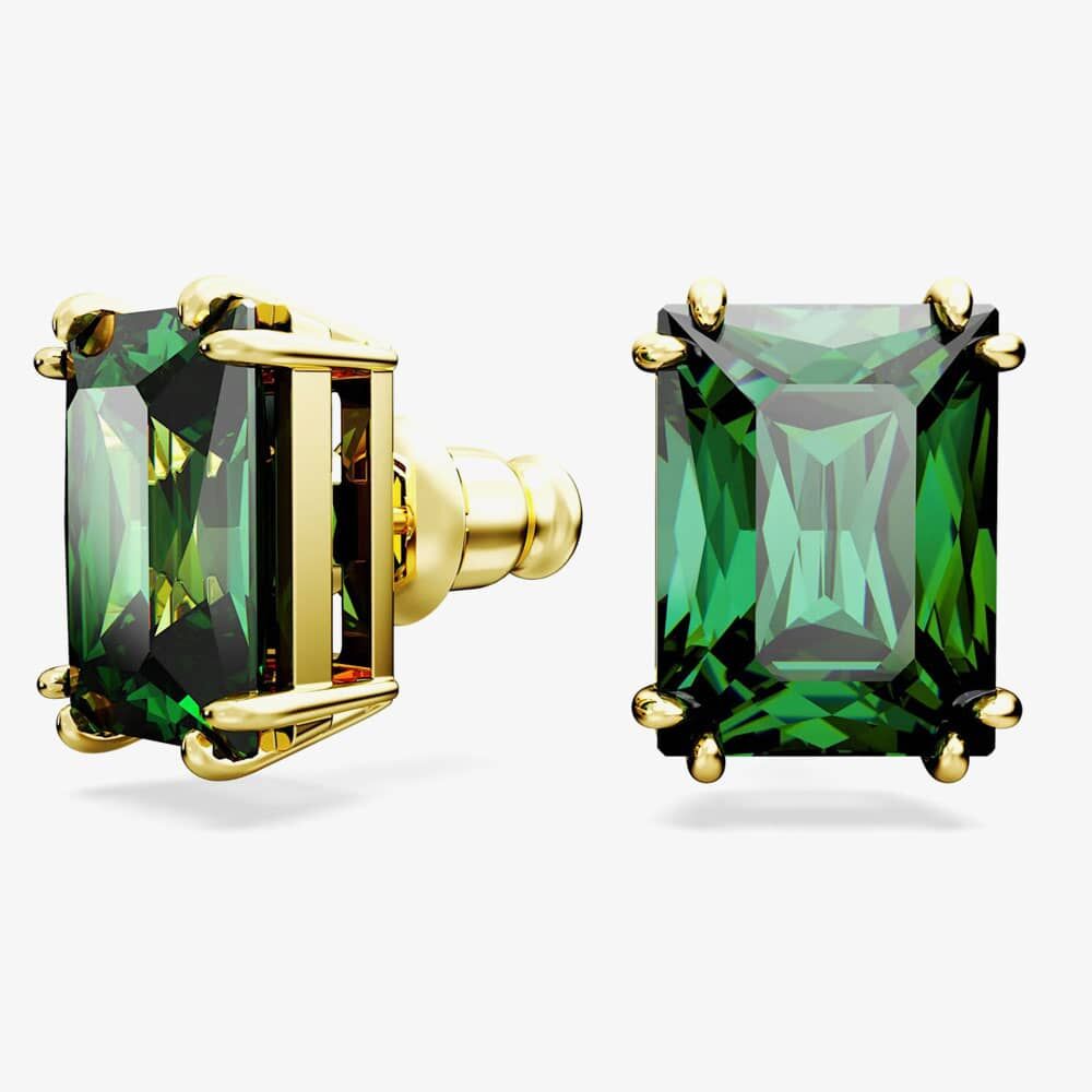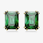 Simple yet mesmerizing, these studs from the Stilla family deliver on style. Shimmering green rectangular Swarovski Zirconia sit in a refined gold-tone plated double prong setting. Choose these faceted earrings for a head-turning flourish of green.