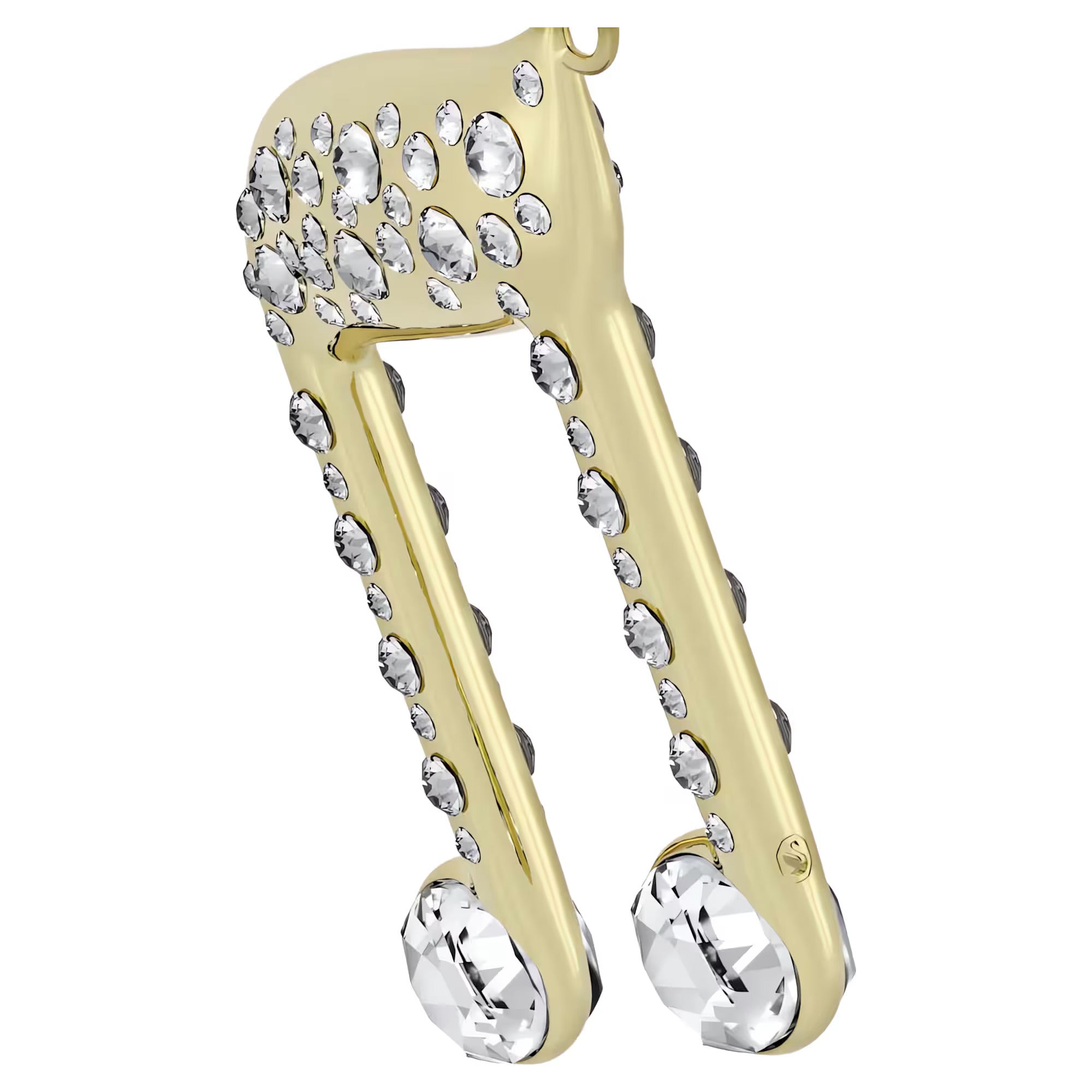 Celebrate your love of festive songs with this refined double music note ornament. Suspended from a white grosgrain ribbon, the luxurious ornament is crafted in glossy champagne gold-tone metal and is embellished with clear crystals on each side. Designed to cast beautiful light reflections throughout the season, it makes a unique gift for anyone who adores joyful melody. Decoration object. Not a toy. Not suitable for children under 15.