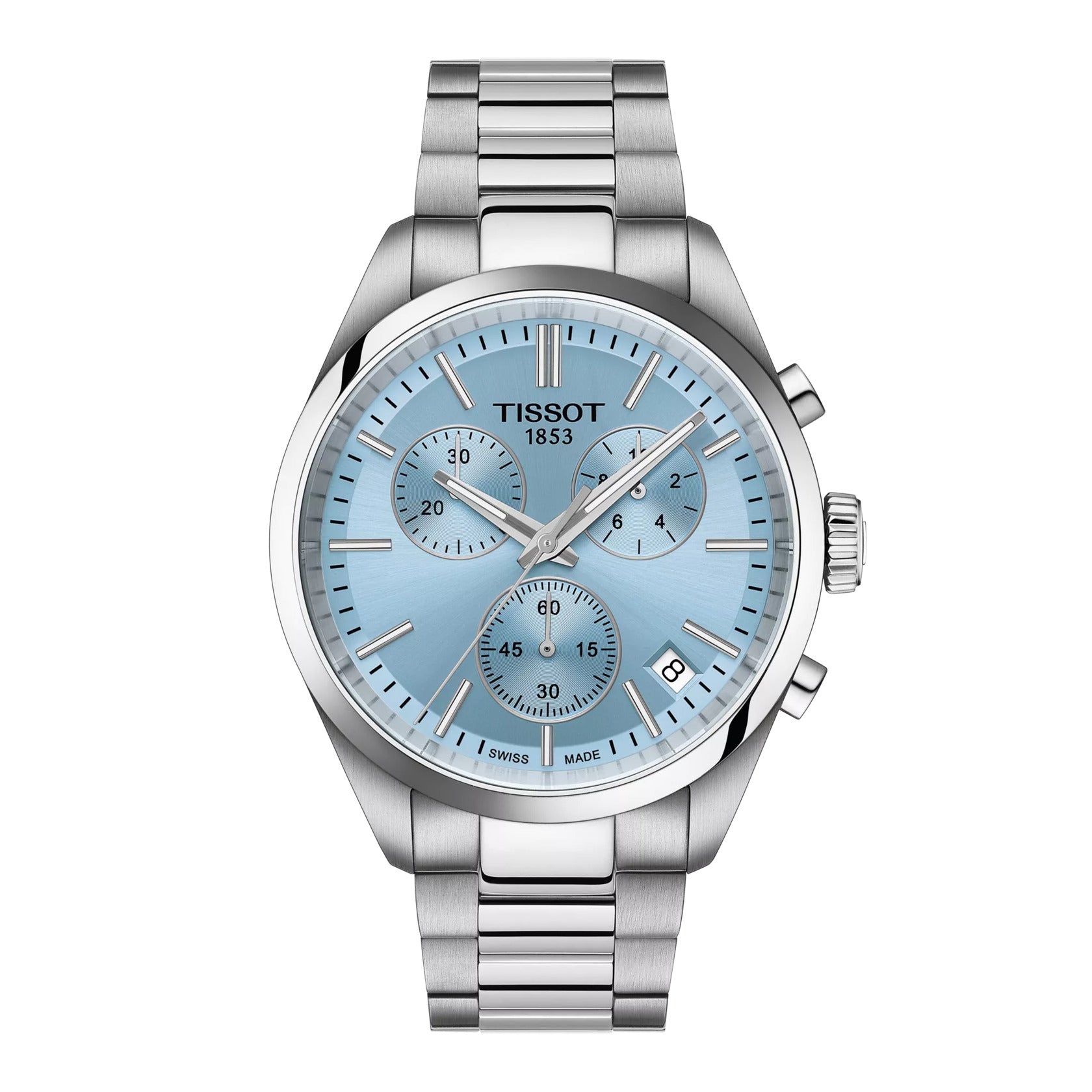 The PR100 collection offers classic quartz chronographs in various colours. These sporty yet classy timepieces feature a polished middle row on the bracelet for a shinier look, a white disc in the date window, and a standard second hand. The G10.212 chrono quartz movement provides precision and robustness, complemented by water resistance up to 10 bar (100 meters/330 feet), and visibility in low-light conditions is guaranteed by the Super-LumiNova® coating on the needle-shaped hands.