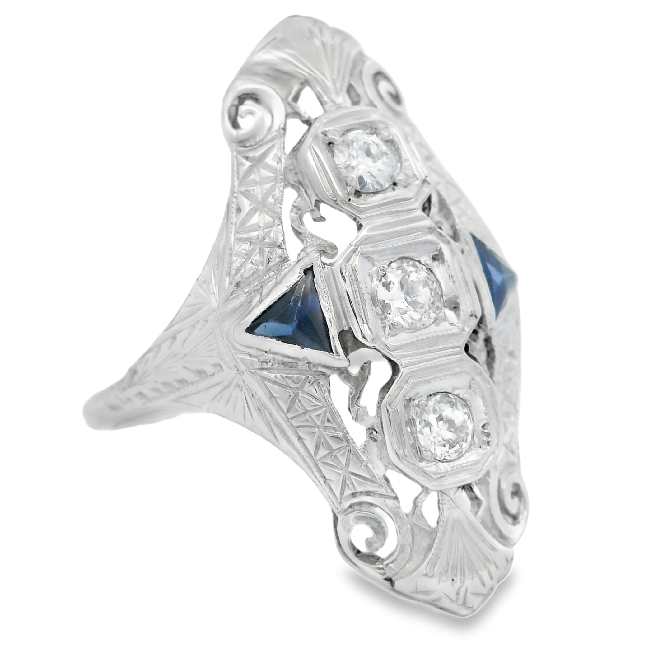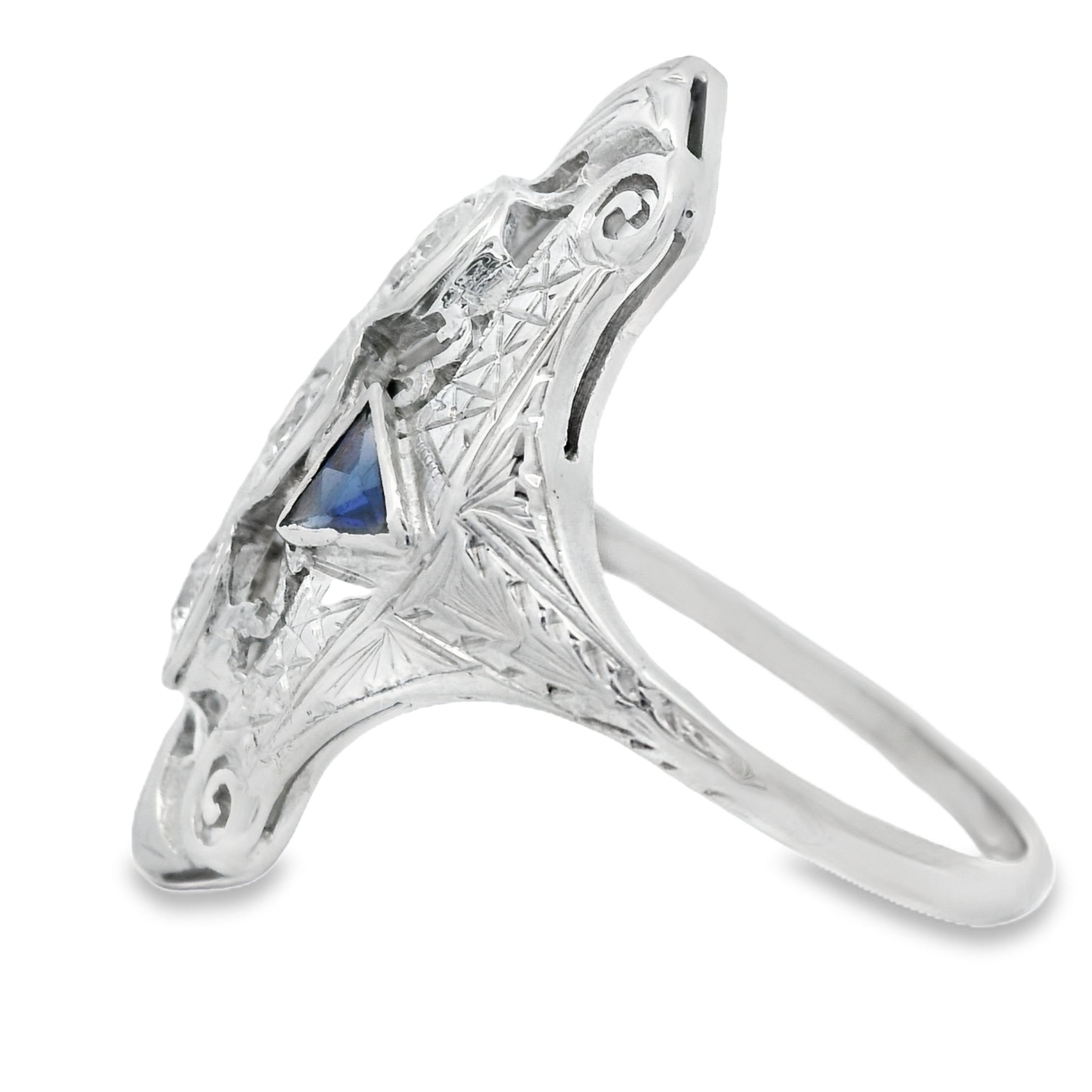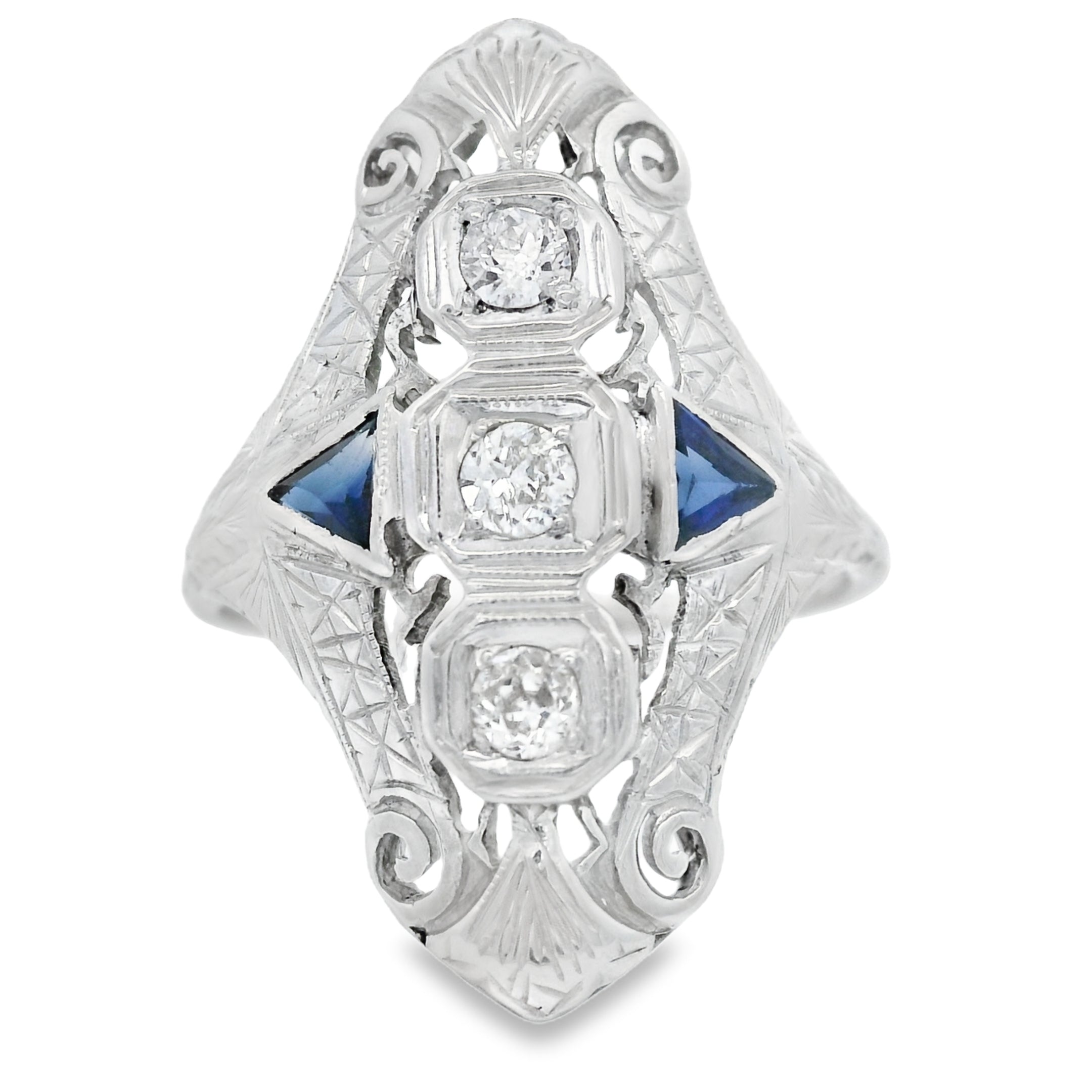 18KT White Gold Vintage Sapphire And Diamond Ring
