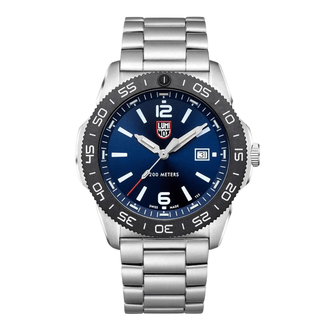 The Pacific Diver is an appealing casual watch for outdoor explorers, as well as for everyday wear, while remaining true to the Luminox brand DNA. Combining a stainless steel case, together with a CARBONOX™ bezel, results in an eye-catching fusion of materials. An easy to read sunburst blue dial with white numerals and hands is combined with a stainless steel bracelet. As with any Luminox, it features our cutting-edge Luminox Light Technology, for self-powered illumination for up to 25 years.