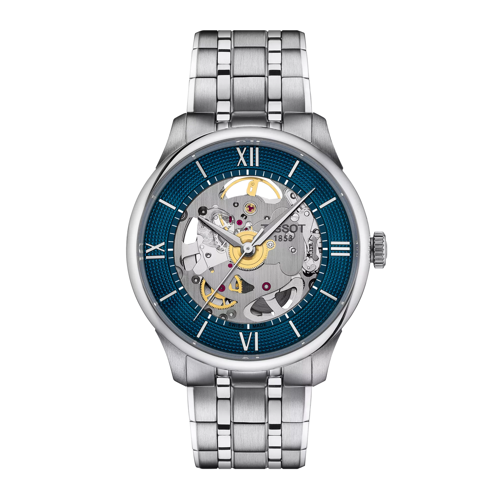 The Tissot Chemin des Tourelles is a very special piece that encapsulates an important part of Tissot's history. It bears the name of the street in Le Locle, Switzerland, where the Tissot factory was established in 1907, and where the company can still be found today. Its contemporary design is perfectly paired with the high quality of our Powermatic 80 movement, for a classic and elegant style. Discover this 39mm automatic model with its stainless steel bracelet, its blue accents and its skeleton dial, revealing the mechanisms of this luxurious timepiece.