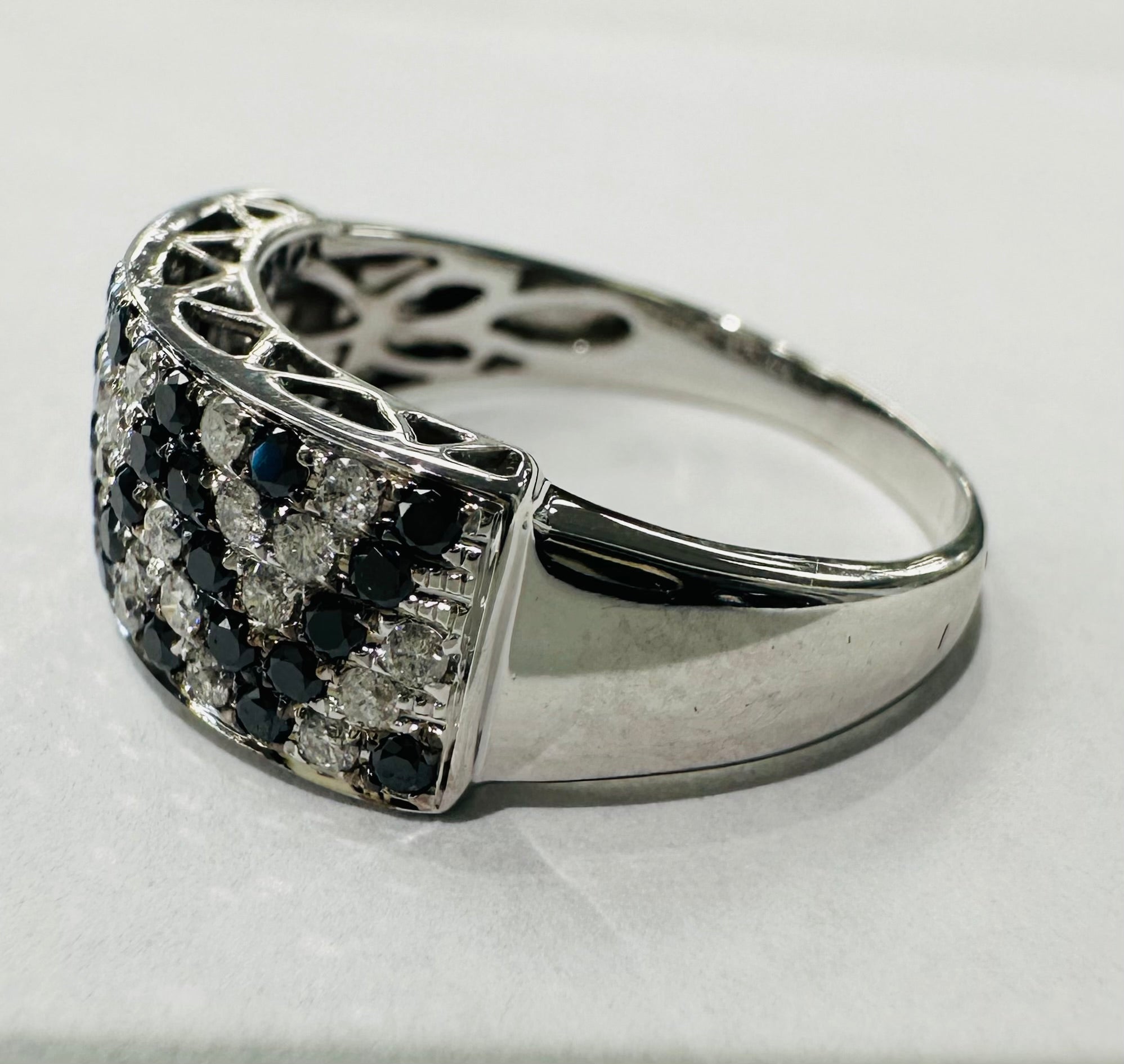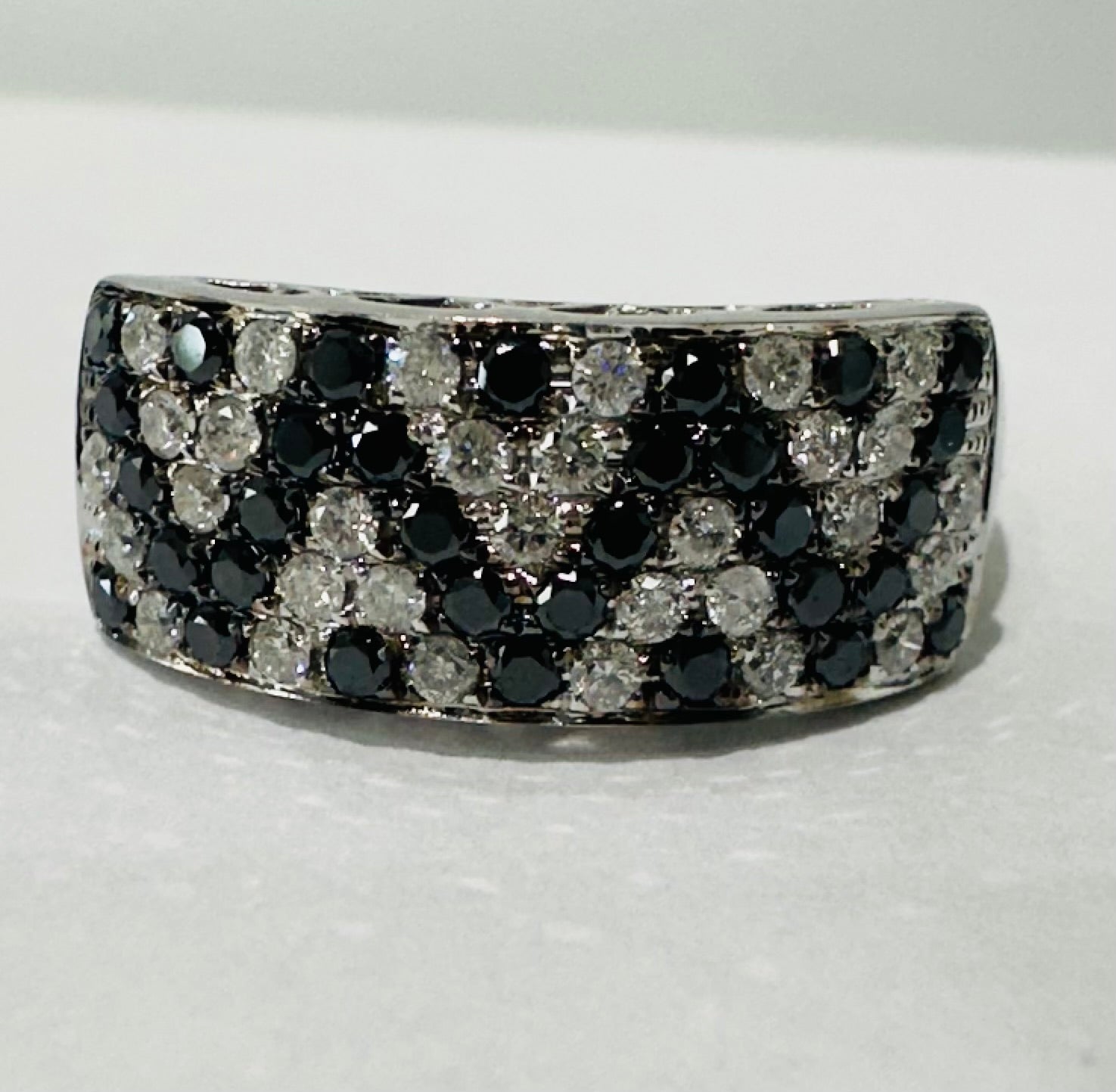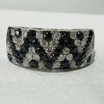 14k White Gold 1 1/2 carat Zig Zag Black and White Diamond Ring.