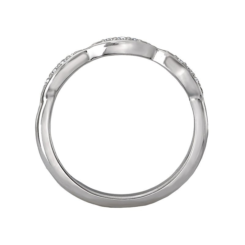 This is a matching wedding band created with round faceted diamonds set in high polished 14kt white gold. (D 1/10 carat total weight)
