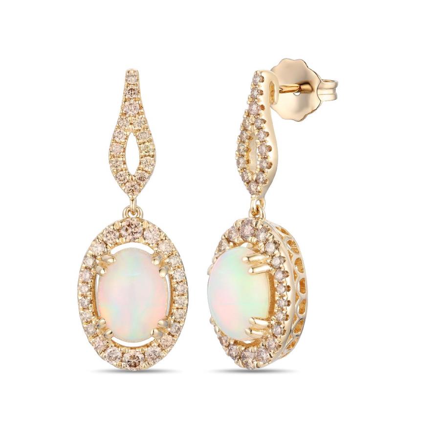 14K Yellow Gold .56cttw Diamond, 1.20ct Opal Earrings