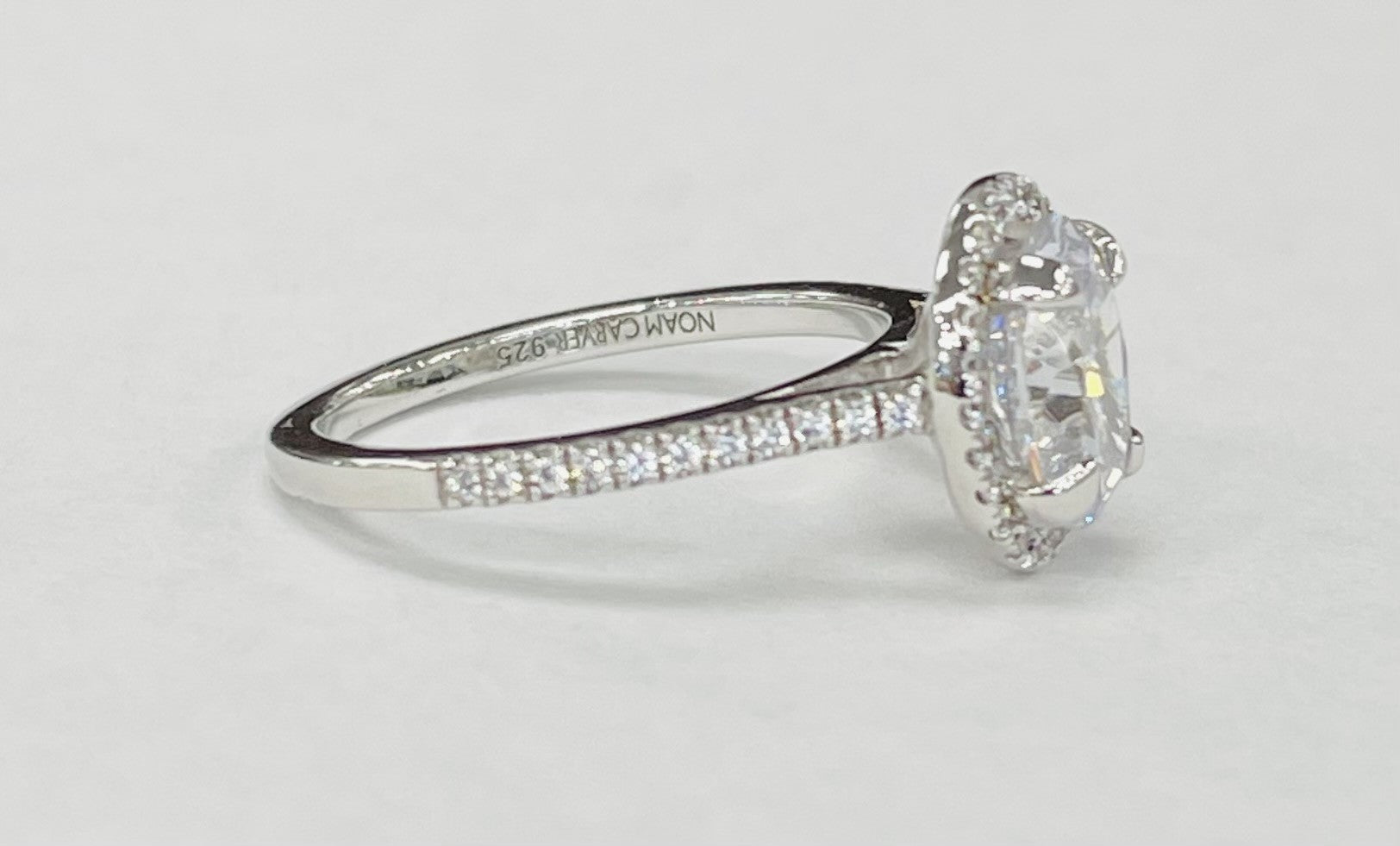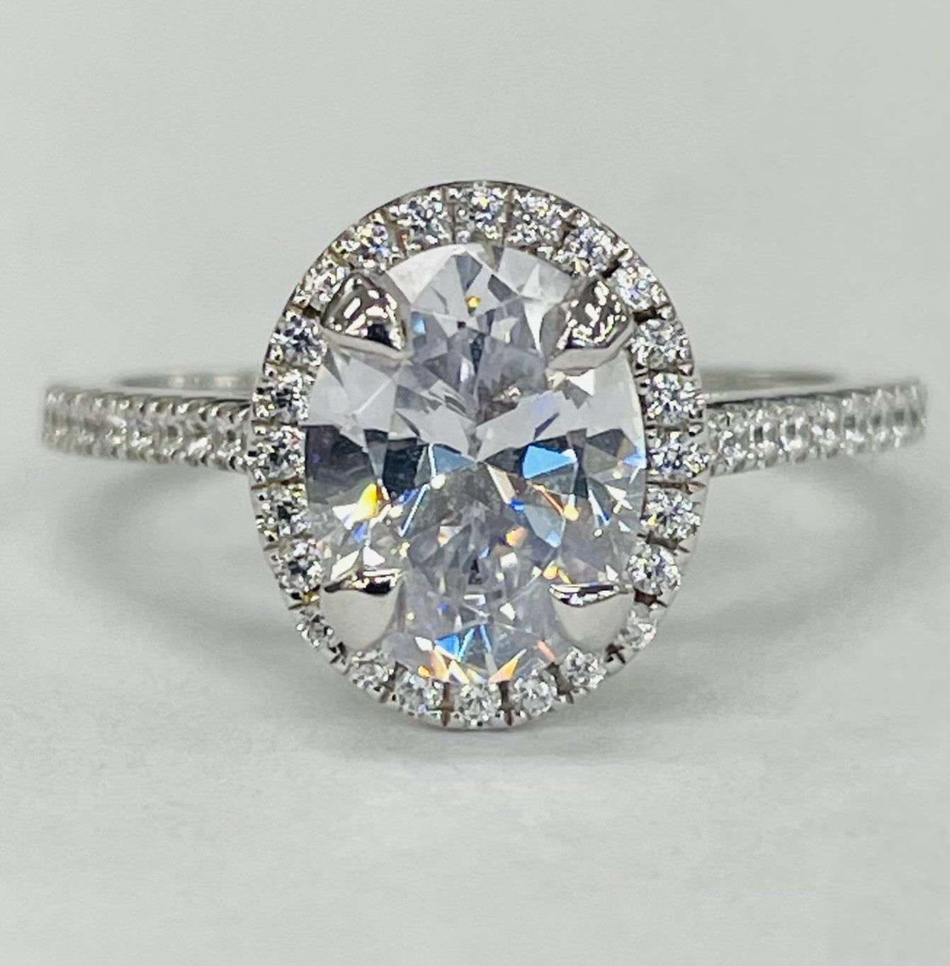 • Design: Oval halo with sculptural detailing and milgrain accents