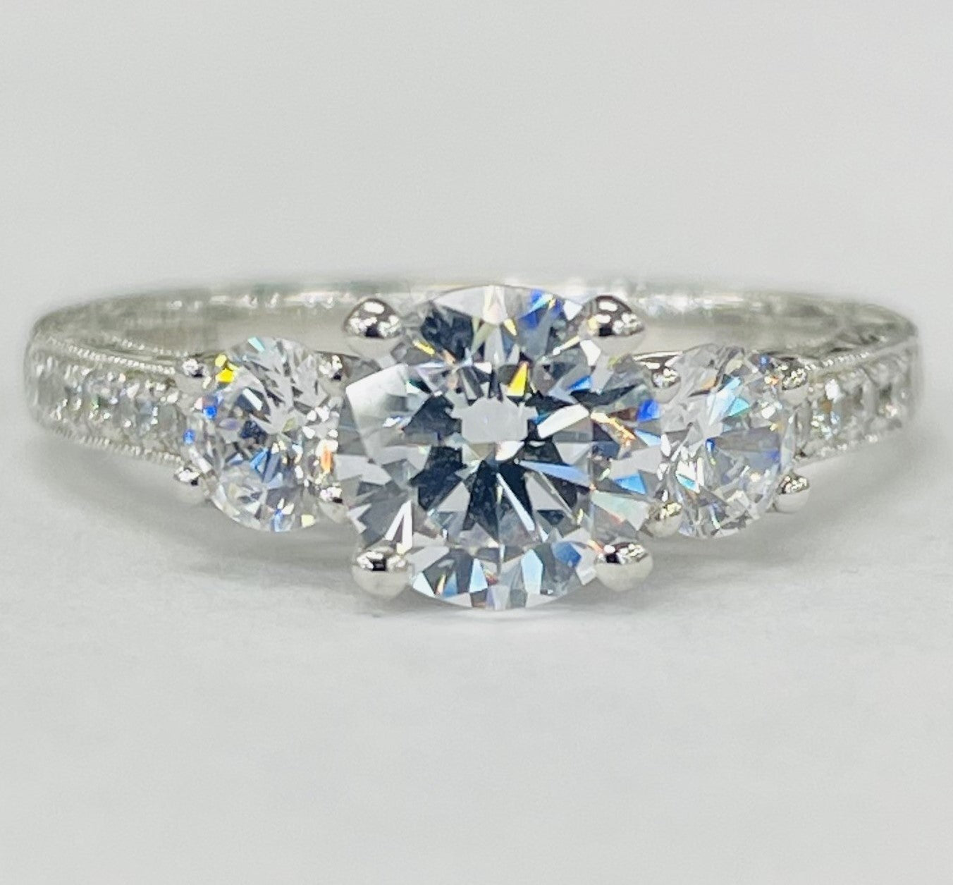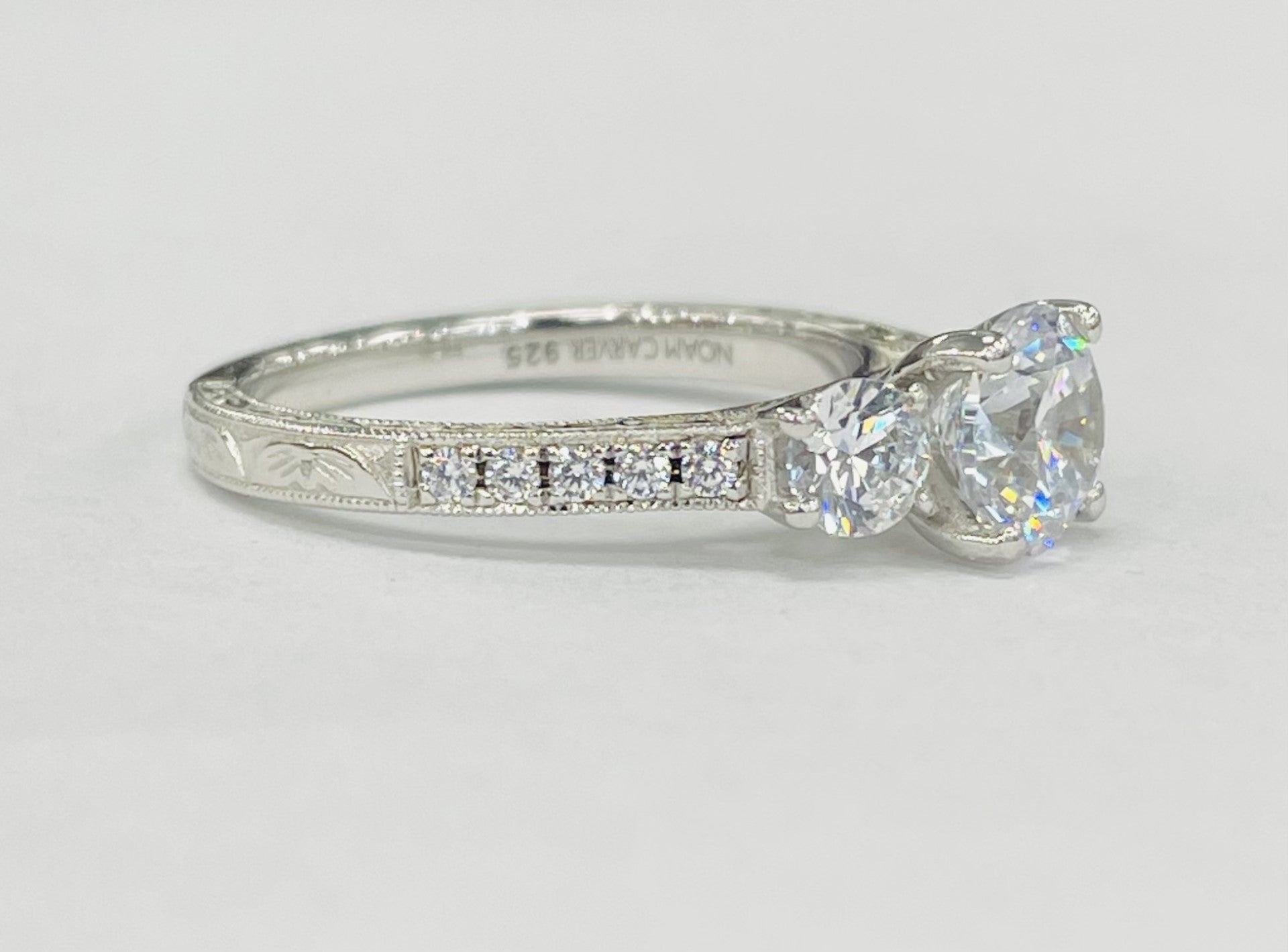 Noam Carver B206-01A Hand-Engraved Three-Stone Diamond Engagement Ring