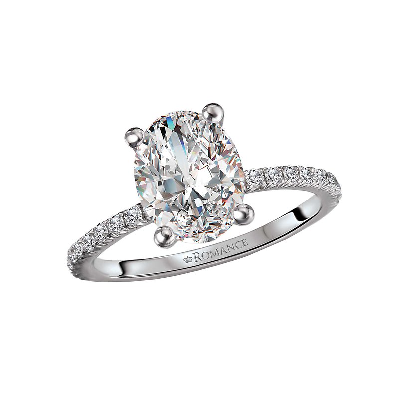- Center Stone: Not included (semi-mount); accommodates a 9.5x7.5mm oval-shaped stone