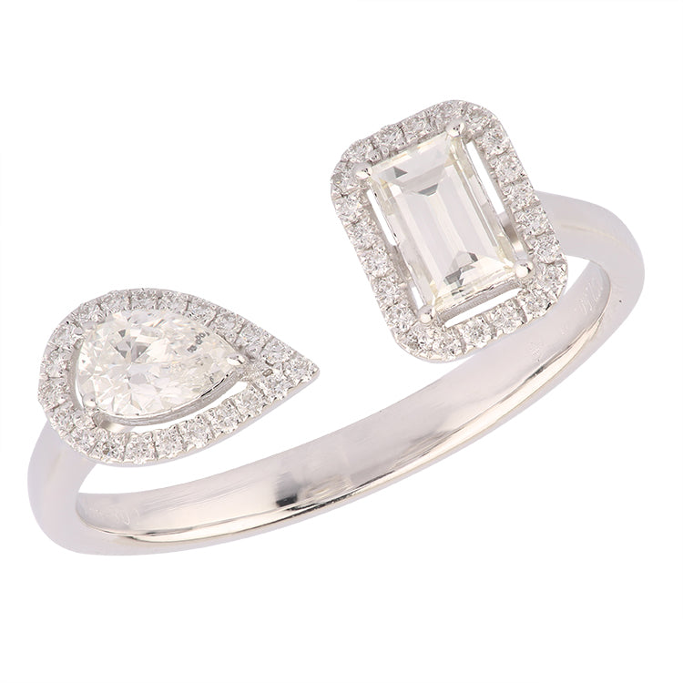 Toi et Moi - 14K White Gold Two Stone with halo bypass Ring