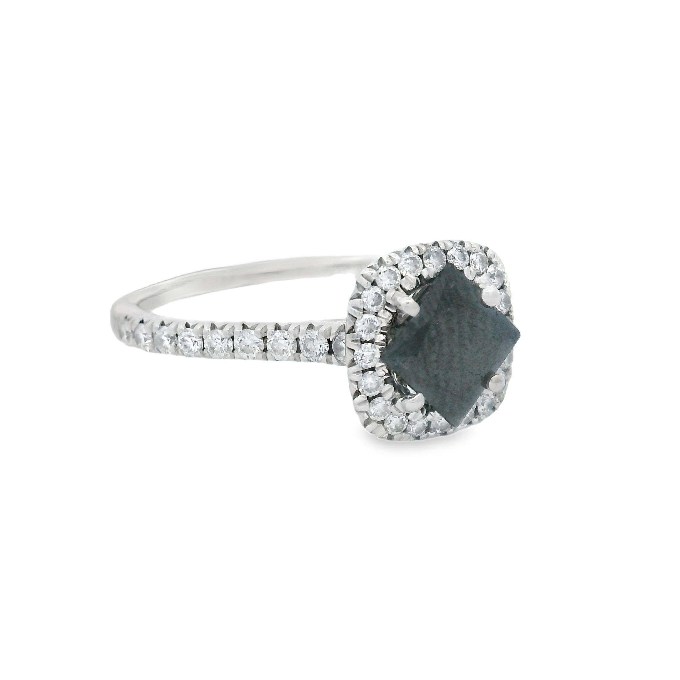 White Gold Black Diamond Halo Engagement Ring