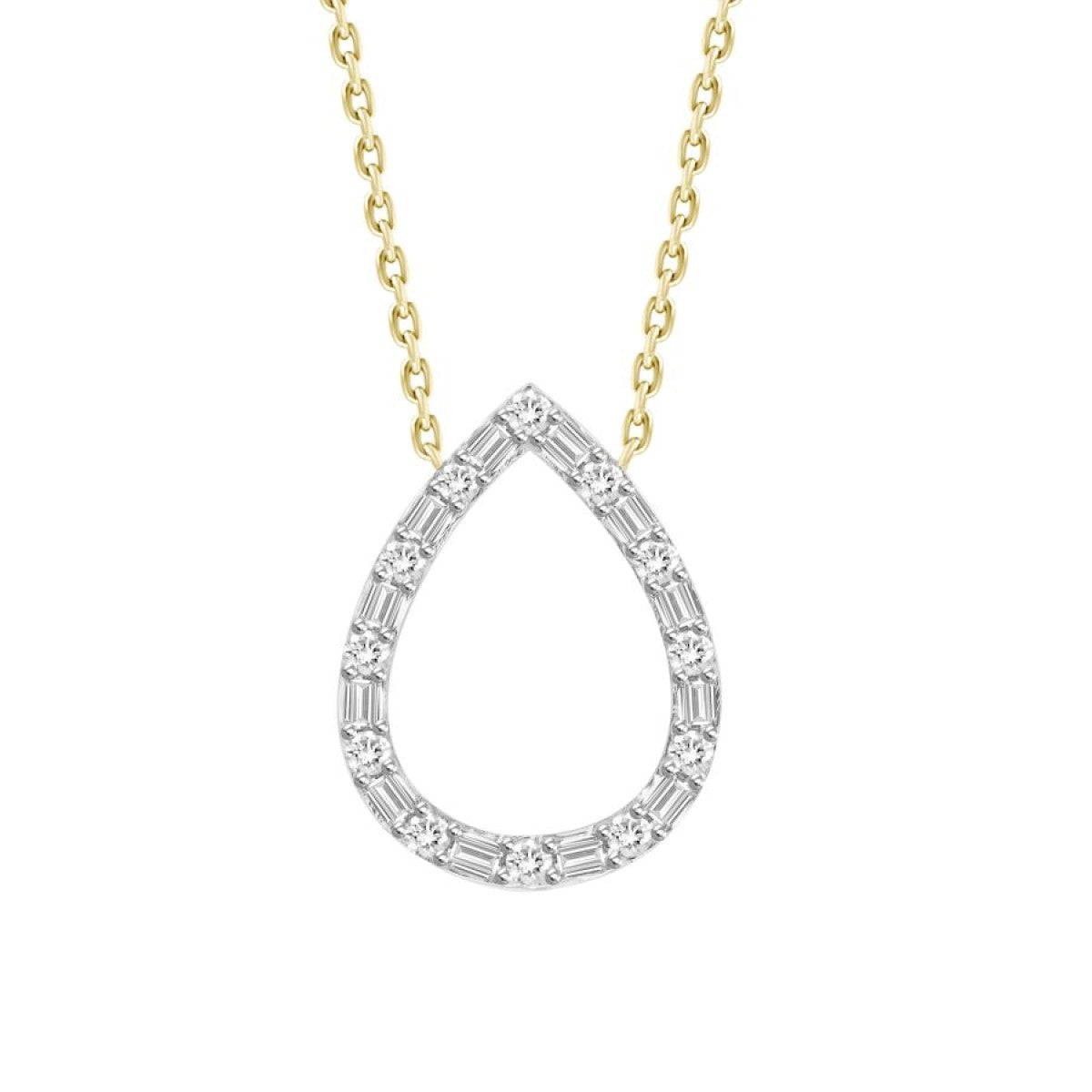 10k Yellow Gold Natural Diamond Pear Necklace .20ctw Round & Baguette Diamonds.