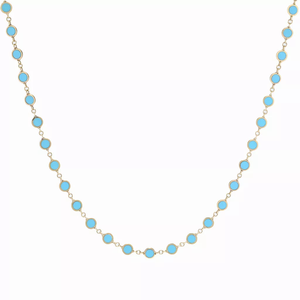 14K YELLOW GOLD CIRCLE TURQUOISE STATION NECKLACE