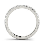 The perfect ring for a women who wants the look of an eternity band but also be able to size it down the road! With diamonds gold 3/4 of the way down the band this ring truly shows odd as an eternity band without the hassel of never being able to size it.
