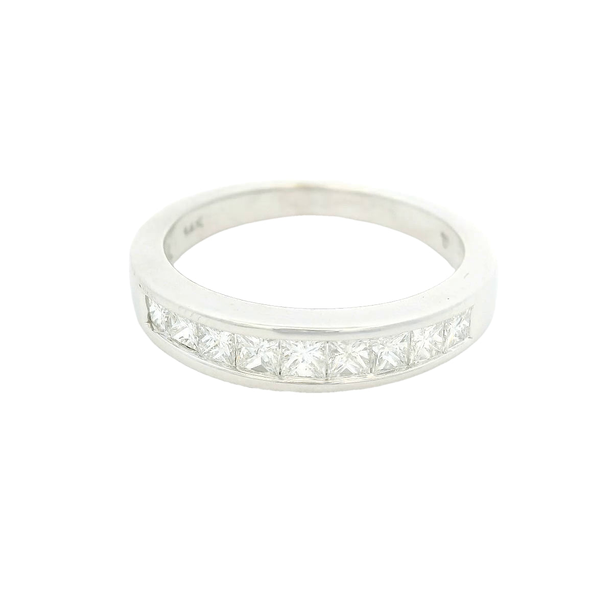 This exquisite 14K white gold diamond band showcases a row of perfectly cut, sparkling diamonds channel set in a sleek and polished white gold band. Its timeless design makes it an ideal choice for both everyday elegance and special occasions. Item # V9263JHM