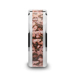 Pink Dinosaur Bone Inlaid Tungsten Carbide Beveled Edged Ring