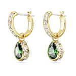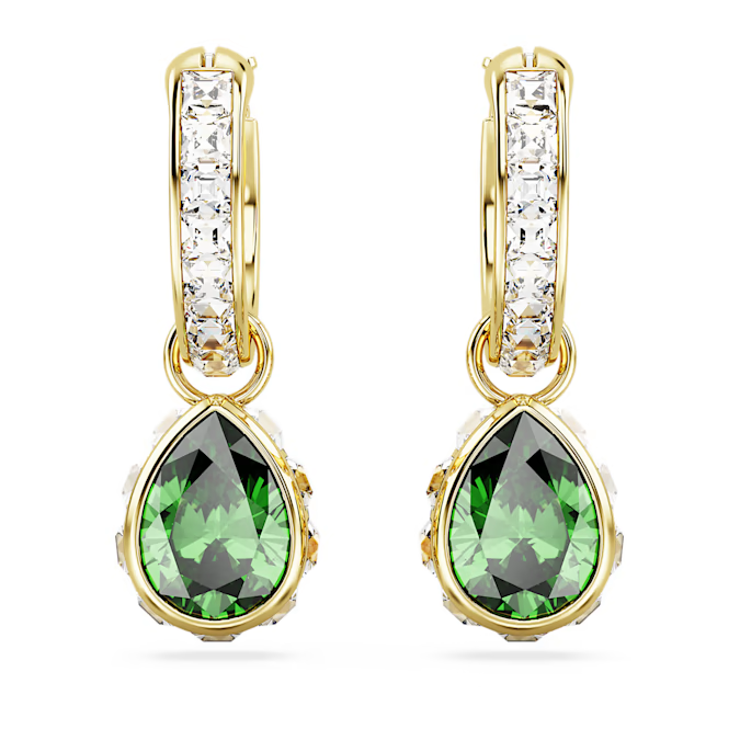 Even the most delicate pieces can be big on self-expression. These Chroma earrings will light up your look with a gold-tone plated design featuring mini hoops with clear square crystals, and a single pear-shaped Swarovski Zirconia in green surrounded by clear square crystals. Its energizing emerald hue will add allure to any look.