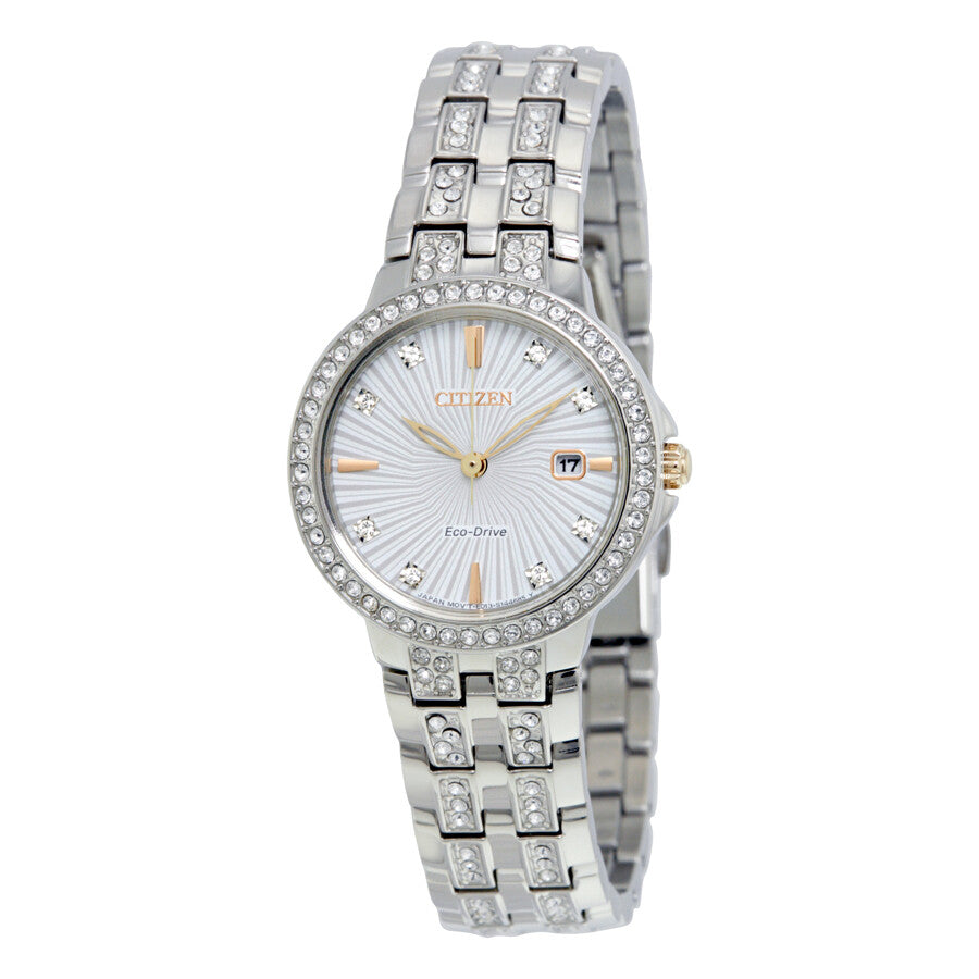 Citizen Eco-Drive Silhouette Crystal EW2340-58A – Stainless Steel Bracelet, Silver Dial with Crystal Accents Ladies’ Watch