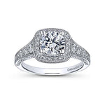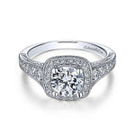 Gabriel & Co. ER7293W44JJ – Vintage Inspired 14K White Gold Cushion Halo Round Diamond Engagement Ring (Setting Only)