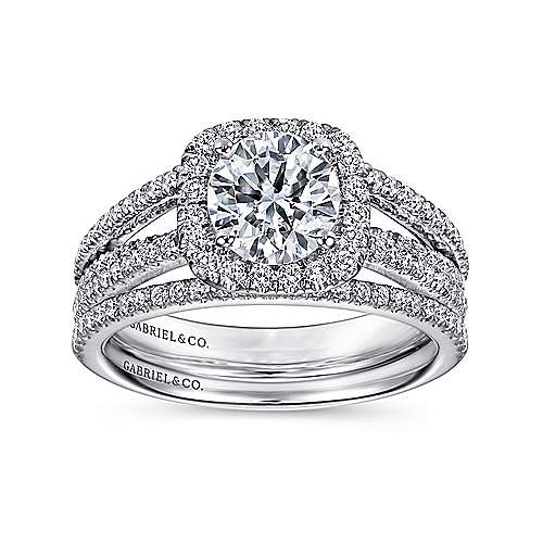 Gabriel & Co. ER7786W44JJ “Hillary” 14K White Gold Round Halo Diamond Engagement Ring