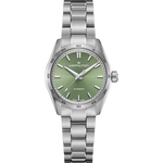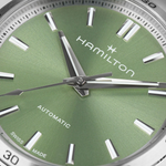 Made for those who enjoy function and style in equal measure, the Jazzmaster Performer line offers a powerful sport-chic aesthetic. Powered by the H-10 automatic movement with an 80 hour power reserve, the Jazzmaster Performer Automatic features a 34mm stainless steel case, accented by a pistachio green dial, nickel indexes and a refined stainless steel bracelet.