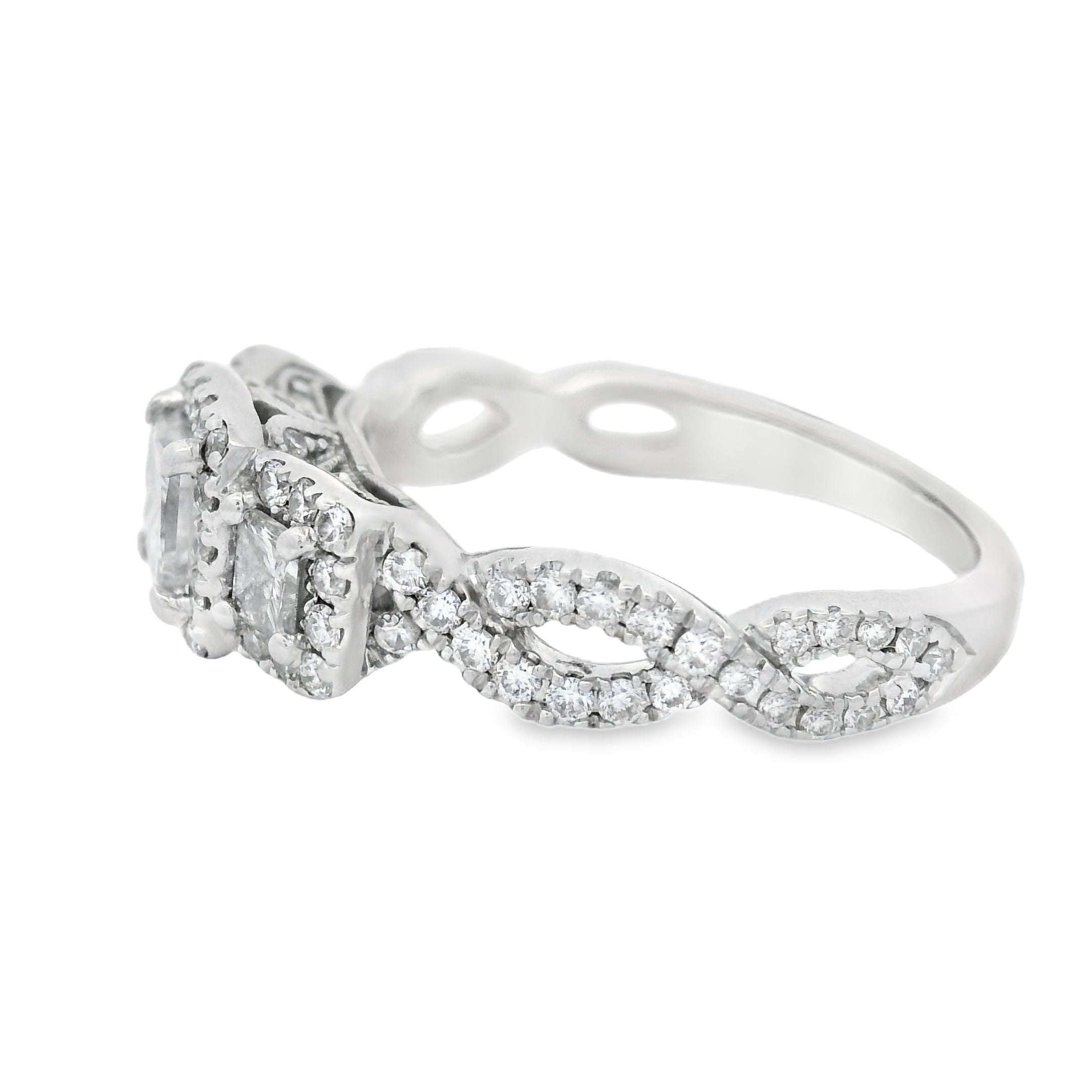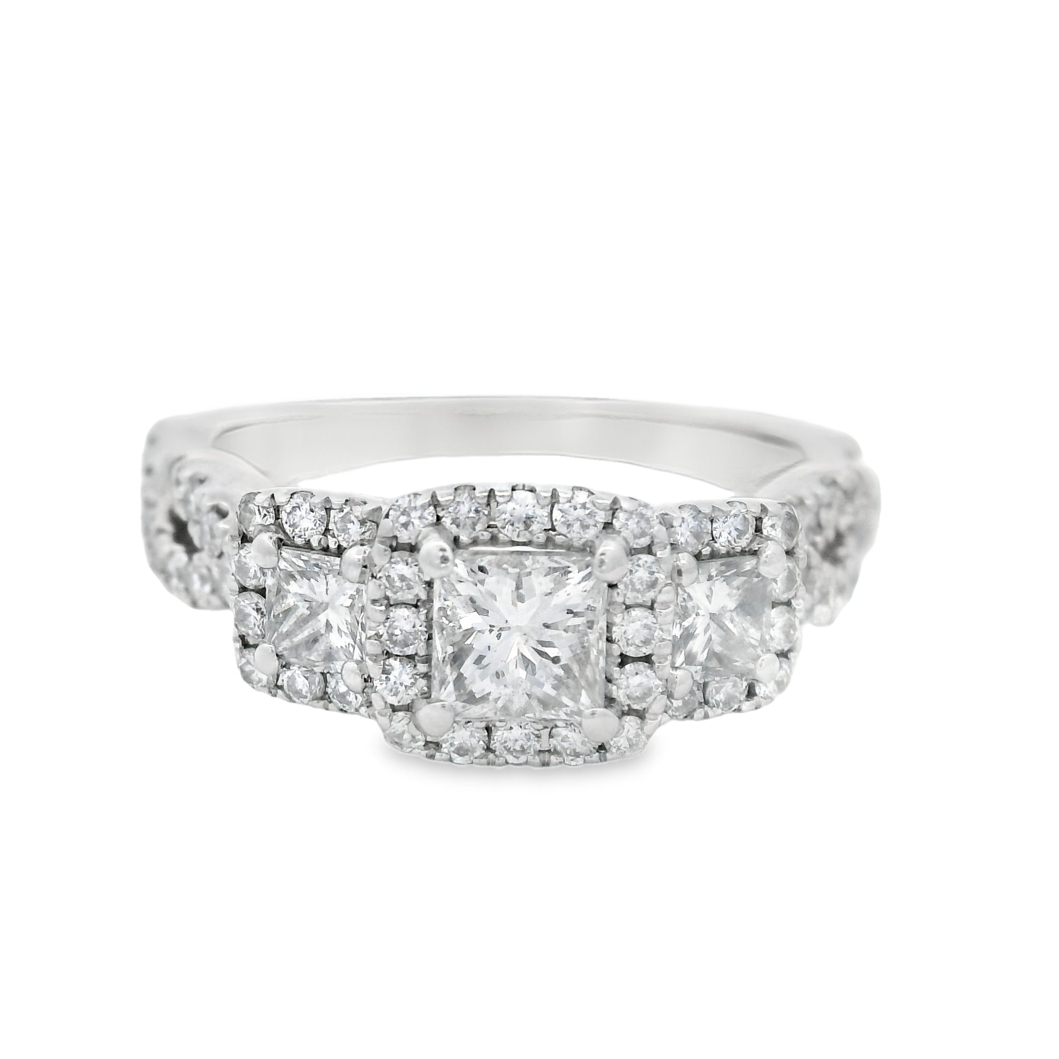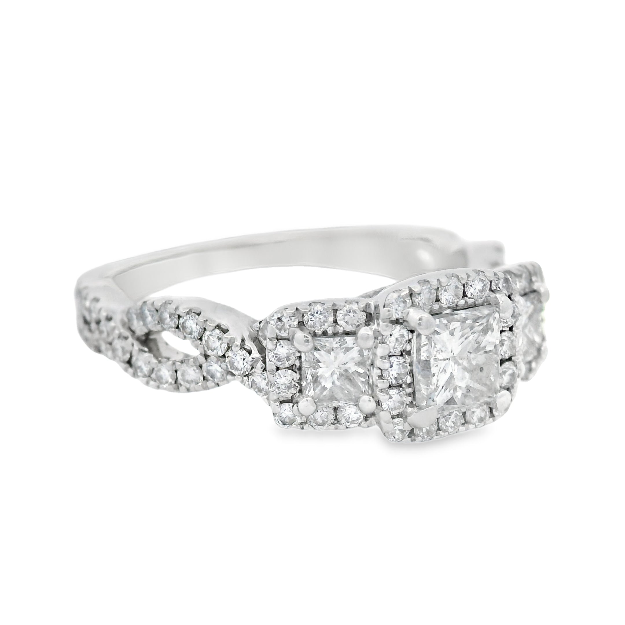Princess Cut Three Stone Halo Twist Diamond Engagement Ring