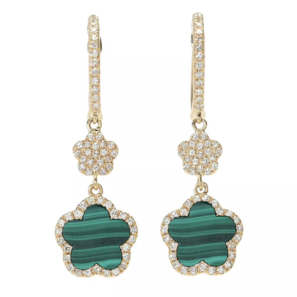 Sabrina Designs 14KY Gold Malachite & Diamond Flower Earrings