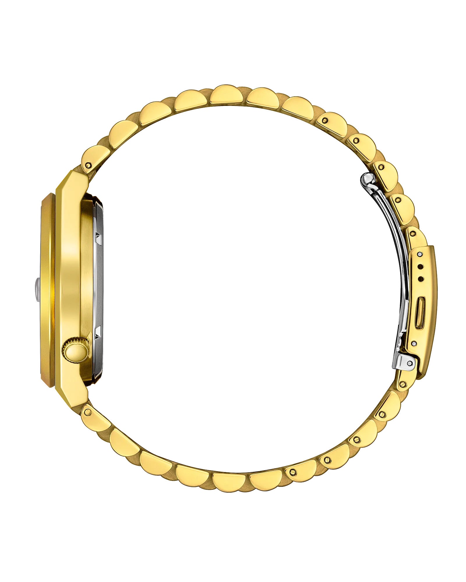 The "Tsuyosa" Automatic, from the NJ015 series, brings ultramodern sports styling right to your wrist. Executed in a versatile 40mm footprint, the sophisticated design of the watch makes a strong impression via a gold-tone stainless steel case and a seamlessly integrated, matching bracelet. Underneath an anti-reflective sapphire crystal, the sporty timepiece makes use of a sunray green dial, with a 3 o’clock date window and contrasting gold-tone details adding to its classic aesthetic. Powered by an automatic movement and offering up to 50 meters of water resistance, the refined timepiece is a daily wearing choice ready for work, play, and everything in between. Caliber 8210.