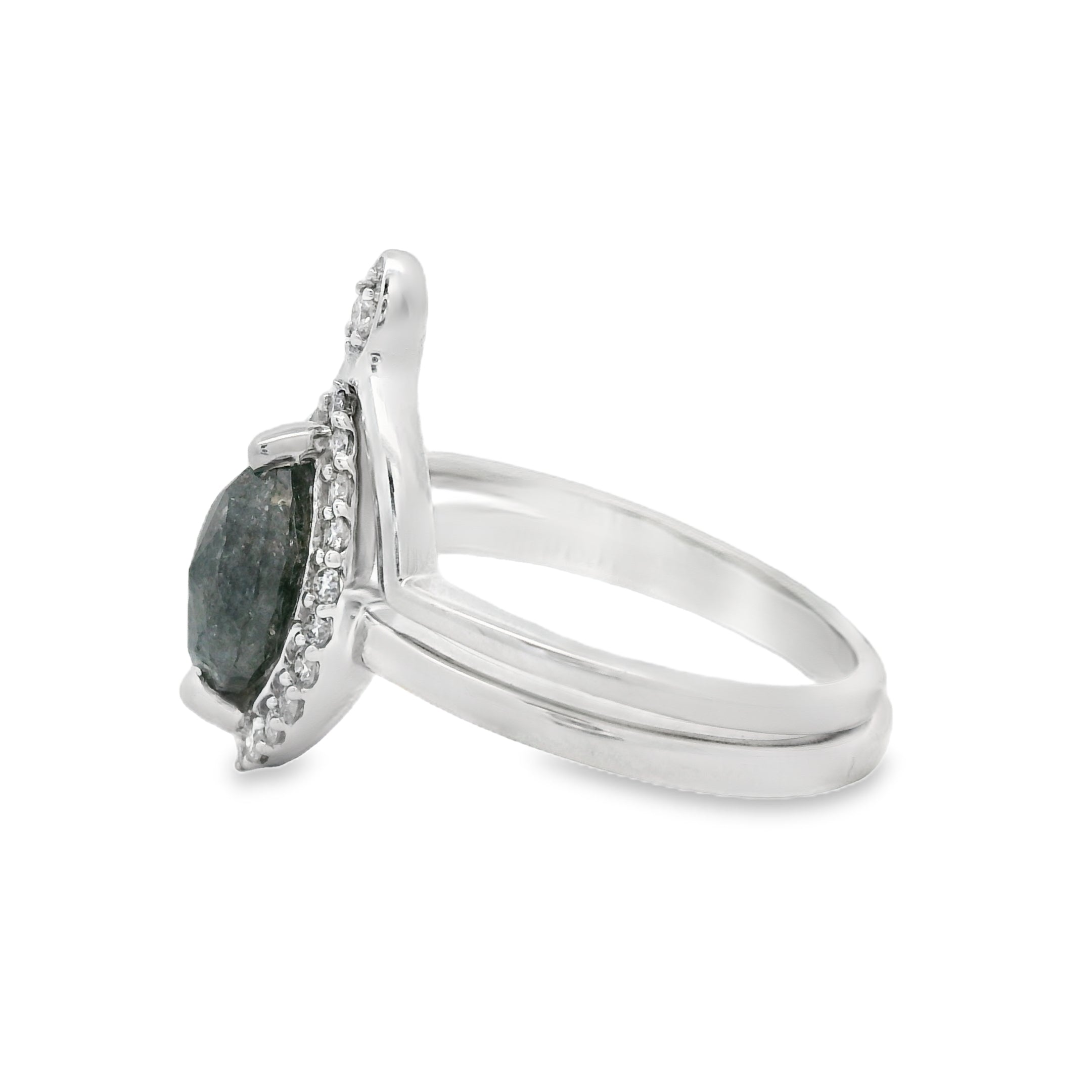 Discover the exquisite beauty of this salt and pepper marquise diamond ring, designed to captivate and inspire. The unique shape of the diamond, surrounded by a halo of sparkling smaller stones, creates a stunning visual effect that is perfect for any occasion. Elevate your jewelry collection with this timeless piece that embodies elegance and sophistication.