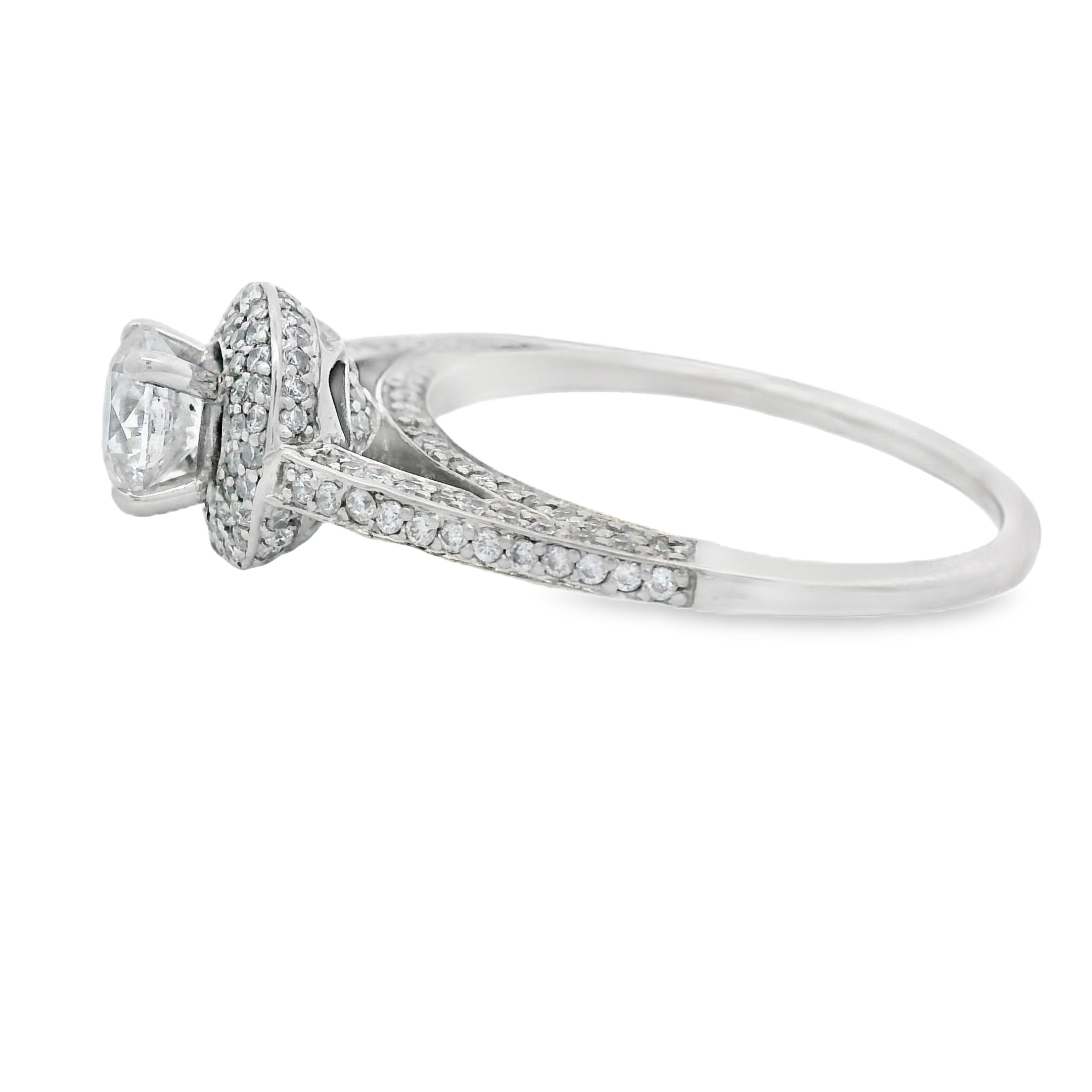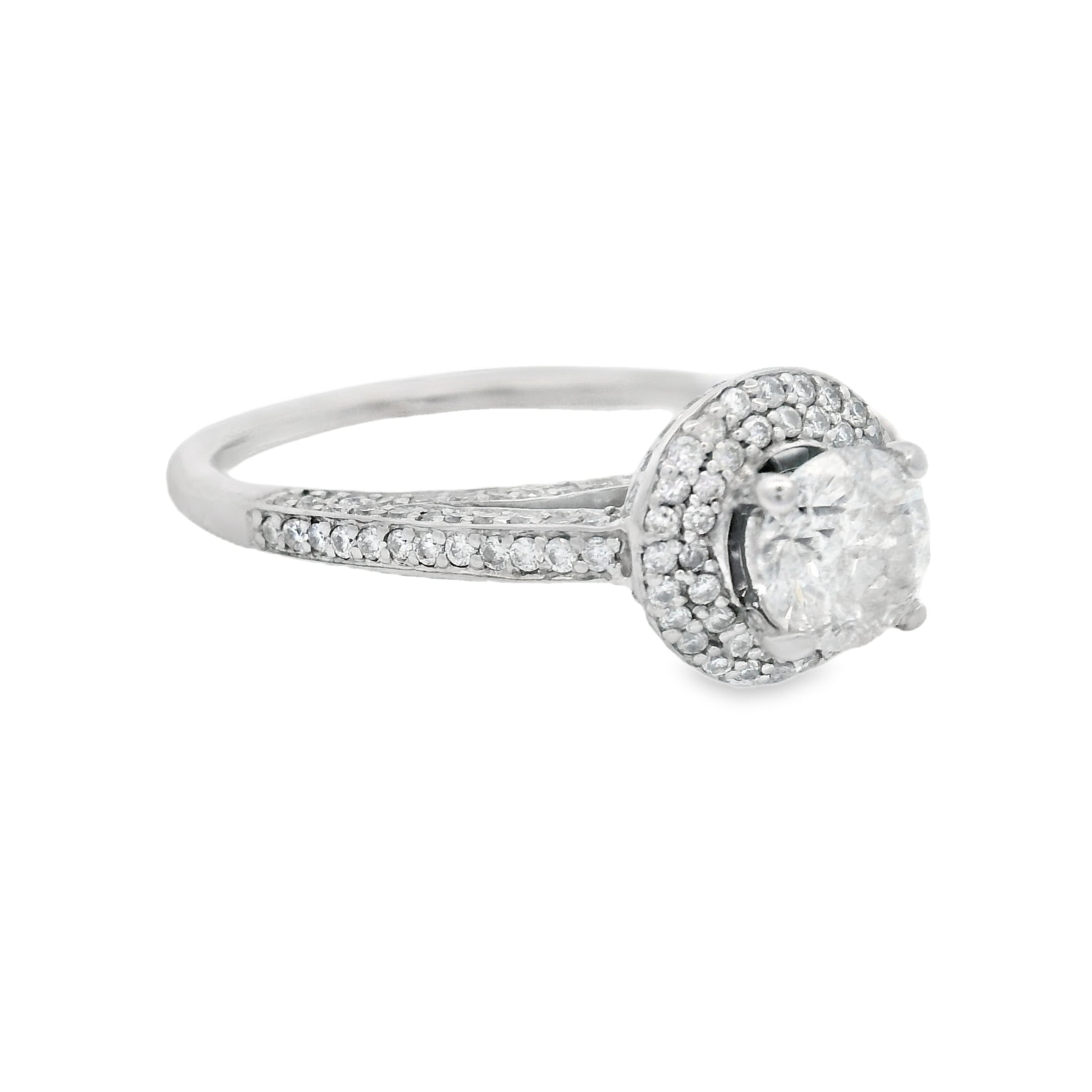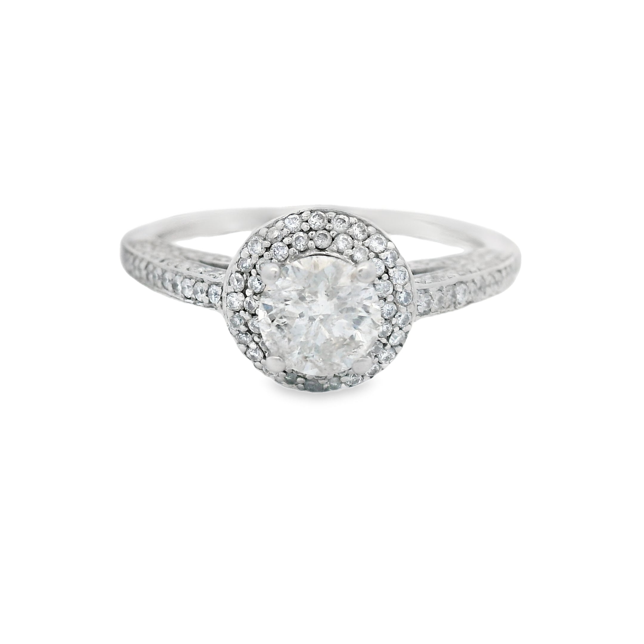 This stunning diamond halo engagement ring features a brilliant round center stone surrounded by a delicate halo of smaller diamonds. Crafted in high-quality white gold, it radiates elegance and sophistication, making it the perfect symbol of love and commitment.