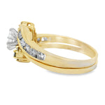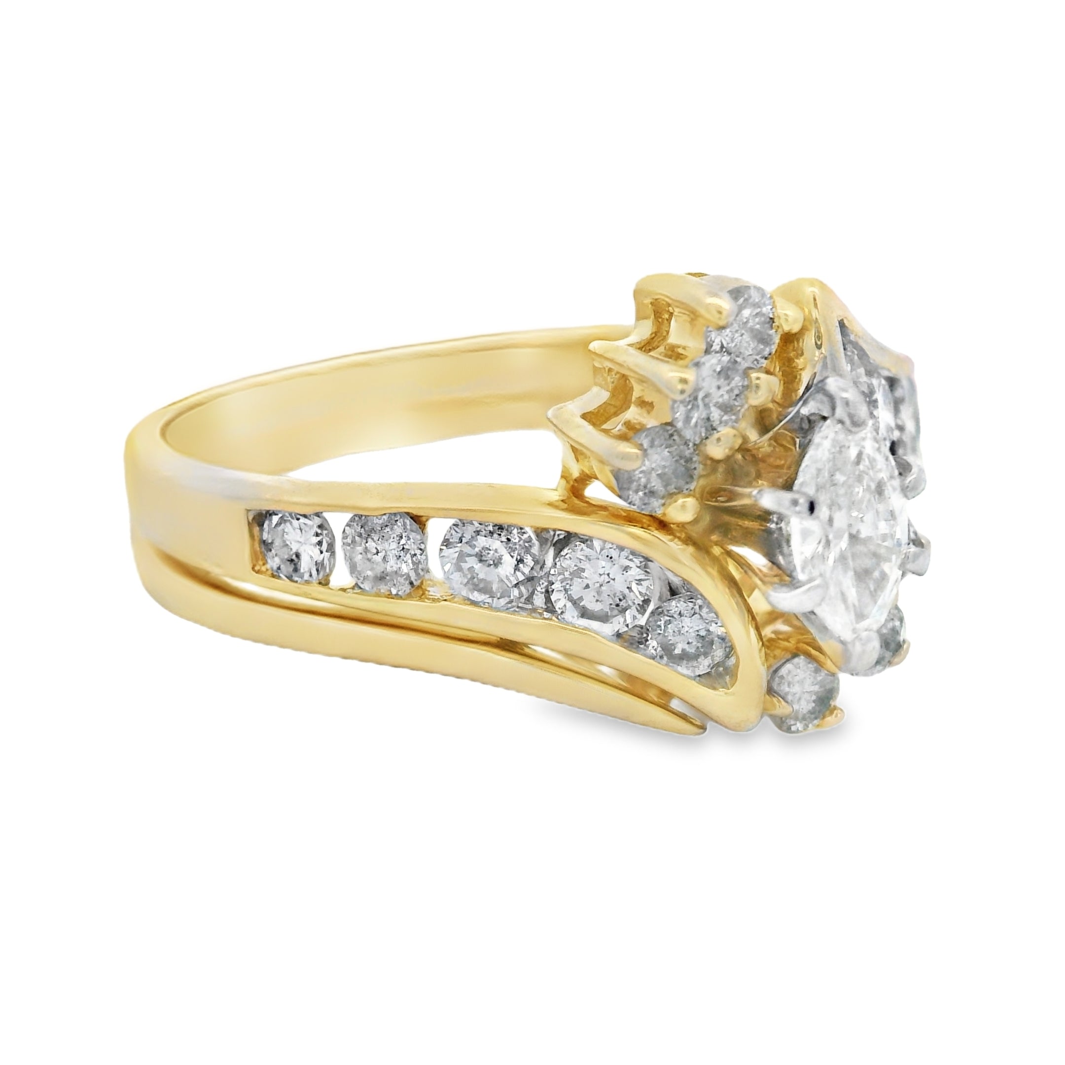 This stunning gold diamond ring features a brilliant central stone surrounded by a halo of smaller diamonds, creating a captivating sparkle. The intricate design and high-quality craftsmanship make it a perfect choice for engagements or special occasions.